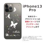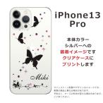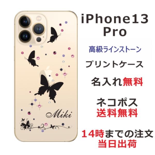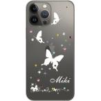 iPhone13 Pro アイフォン13プロ らふら 名入れ スマホケース ラインストーン スリーバタフライ