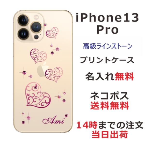 iPhone13 Pro アイフォン13プロ らふら 名入れ スマホケース ラインストーン グラデハート
