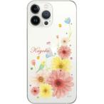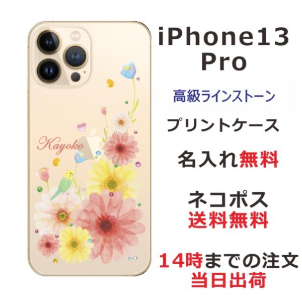 iPhone13 Pro アイフォン13プロ らふら 名入れ スマホケース ラインストーン ふんわりフラワー インコ