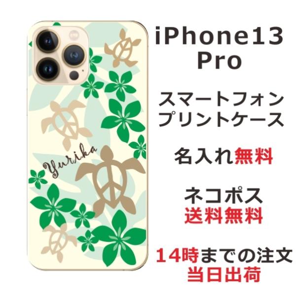 iPhone13 Pro アイフォン13プロ らふら 名入れ スマホケース ハワイアン グリーン ホヌ