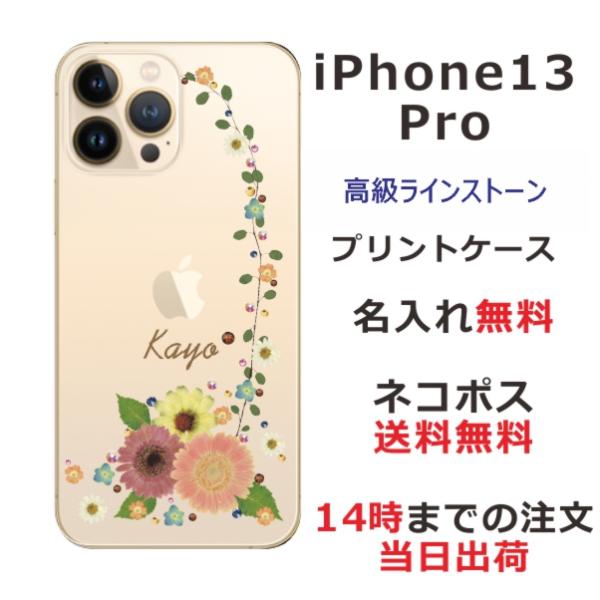 iPhone13 Pro アイフォン13プロ らふら 名入れ スマホケース ラインストーン スマホカバー 押し花風 パステル アイビー