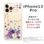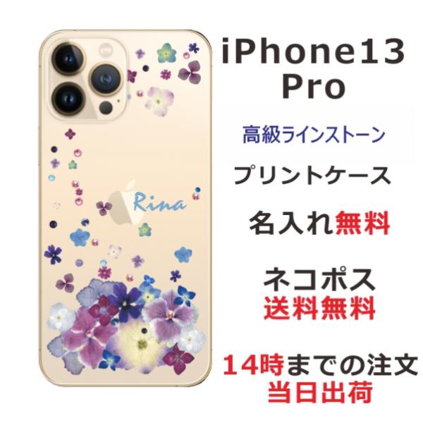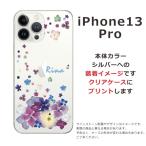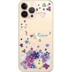 iPhone13 Pro アイフォン13プロ らふら 名入れ スマホケース ラインストーン スマホカバー 押し花風 デコレーション パープル