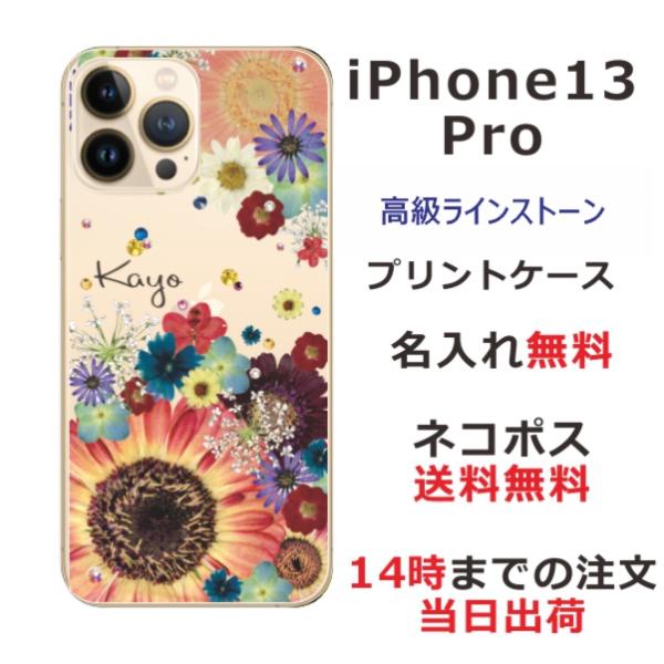 iPhone13 Pro アイフォン13プロ らふら 名入れ スマホケース ラインストーン スマホカバー 押し花風 フラワーアレンジカラフル