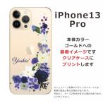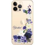 iPhone13 Pro アイフォン13プロ らふら 名入れ スマホケース ラインストーン スマホカバー 押し花風 ブルーアレンジ