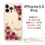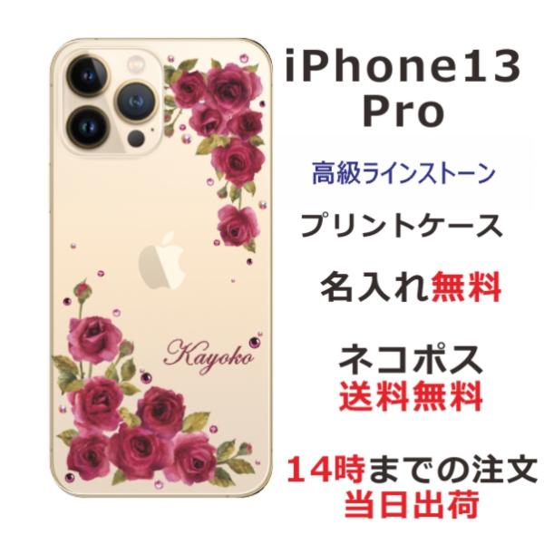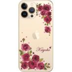 iPhone13 Pro アイフォン13プロ らふら 名入れ スマホケース ラインストーン スマホカバー 押し花風 ダークピンク ローズ