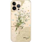 iPhone13 Pro アイフォン13プロ らふら 名入れ スマホケース ラインストーン スマホカバー 押し花風 マーガレットレース