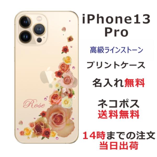 iPhone13 Pro アイフォン13プロ らふら 名入れ スマホケース ラインストーン スマホカバー 押し花風 バラ