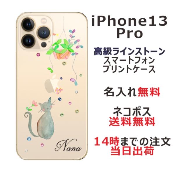 iPhone13 Pro アイフォン13プロ らふら 名入れ スマホケース ラインストーン おすまし 黒猫