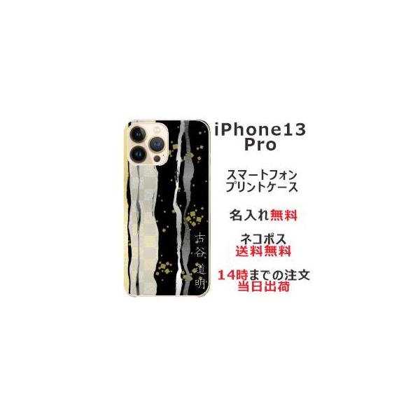 iPhone13 Pro アイフォン13プロ らふら 名入れ スマホケース 和柄 花 モダン漆黒金箔