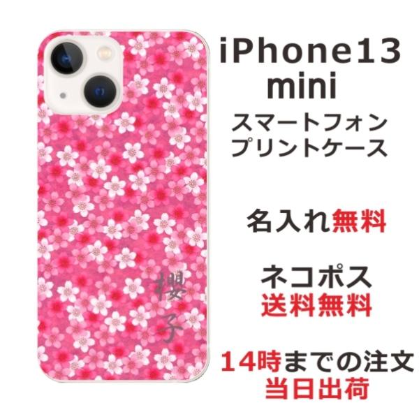 iPhone13 mini アイフォン13ミニ らふら 名入れ スマホケース 和柄 桜ピンク
