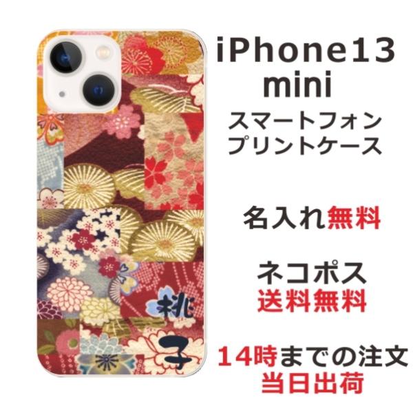iPhone13 mini アイフォン13ミニ らふら 名入れ スマホケース 和柄 着物パッチワークピンク