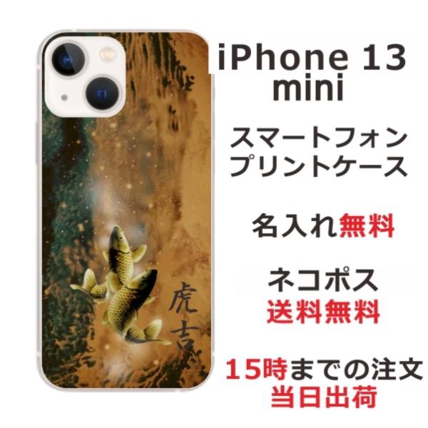 iPhone13 mini アイフォン13ミニ らふら 名入れ スマホケース 和柄 黄金双鯉
