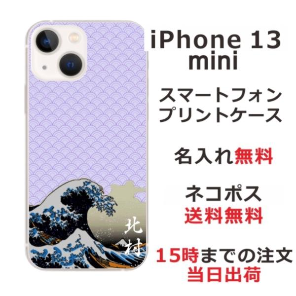 iPhone13 mini アイフォン13ミニ らふら 名入れ スマホケース 和柄 浮世絵波