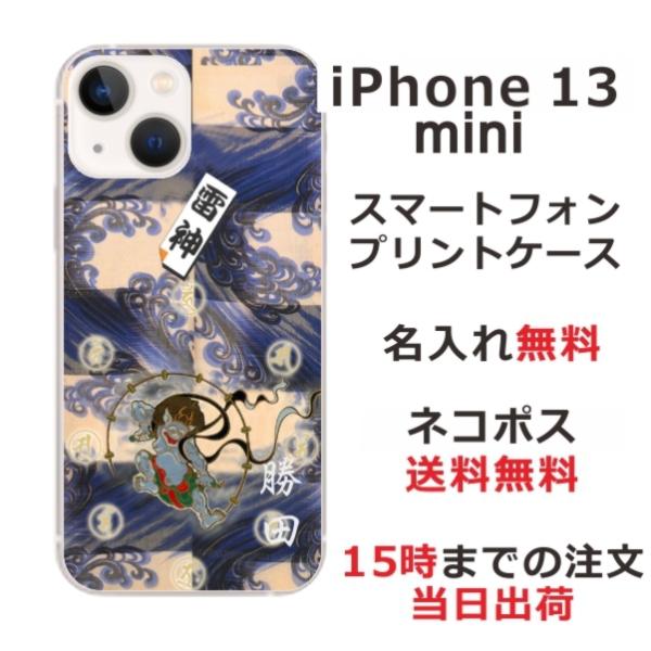 iPhone13 mini アイフォン13ミニ らふら 名入れ スマホケース 和柄 雷神