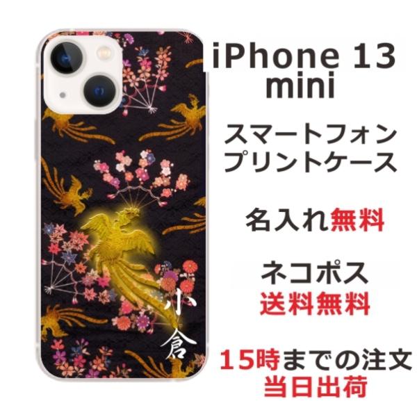 iPhone13 mini アイフォン13ミニ らふら 名入れ スマホケース 和柄 鳳凰黒