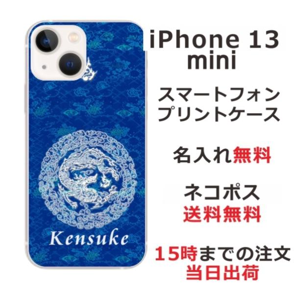 iPhone13 mini アイフォン13ミニ らふら 名入れ スマホケース 和柄 円龍青