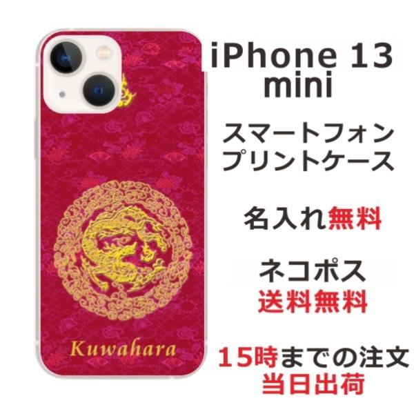 iPhone13 mini アイフォン13ミニ らふら 名入れ スマホケース 和柄 円龍赤