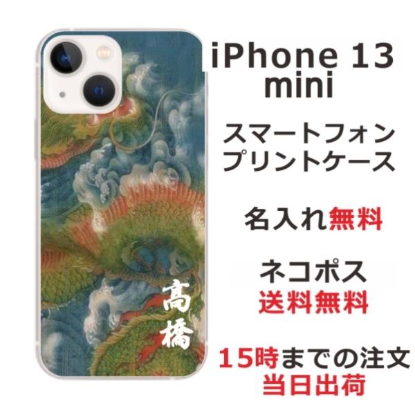 iPhone13 mini アイフォン13ミニ らふら 名入れ スマホケース 和柄 昇龍碧