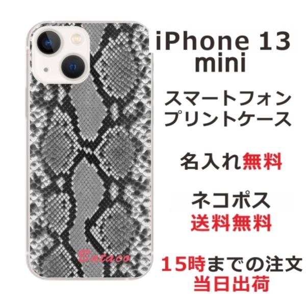 iPhone13 mini アイフォン13ミニ らふら 名入れ スマホケース へび柄 ブラック
