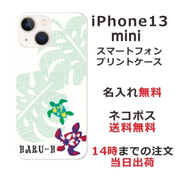 iPhone13 mini アイフォン13ミニ らふら 名入れ スマホケース ハワイアン ホヌ