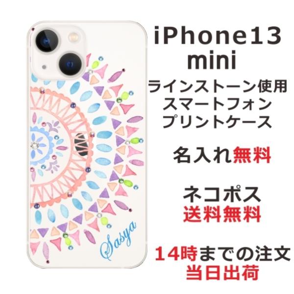 iPhone13 mini アイフォン13ミニ らふら 名入れ スマホケース ラインストーン エスニック