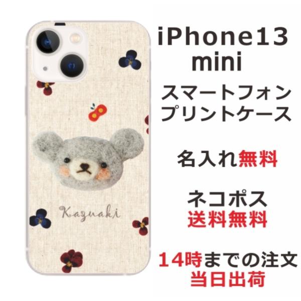 iPhone13 mini アイフォン13ミニ らふら 名入れ スマホケース フェルト風プリントベア