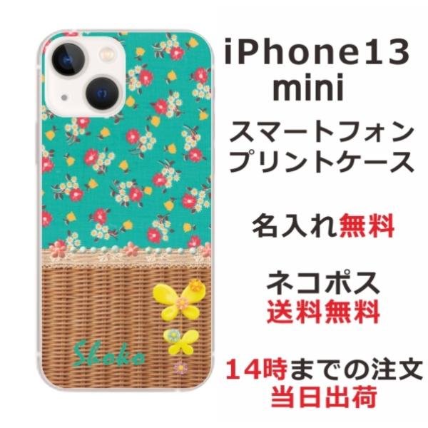 iPhone13 mini アイフォン13ミニ らふら 名入れ スマホケース フラワー 籐