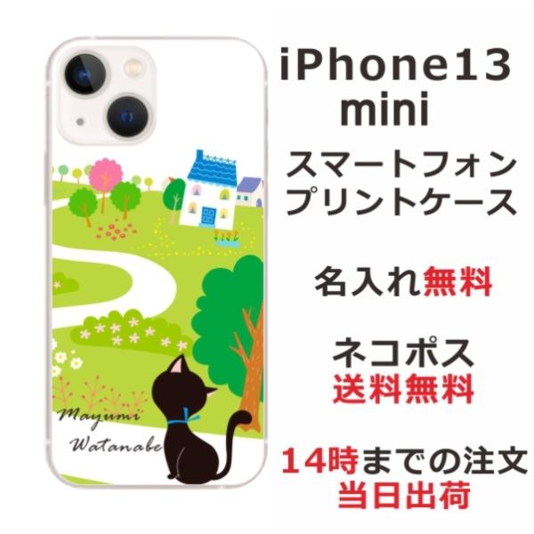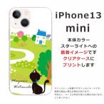iPhone13 mini アイフォン13ミニ らふら 名入れ スマホケース 黒猫 お散歩