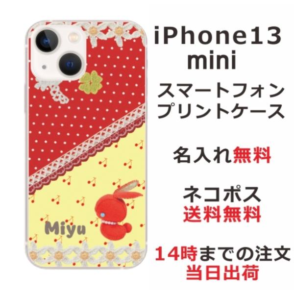 iPhone13 mini アイフォン13ミニ らふら 名入れ スマホケース 赤ウサギ 白い鳥