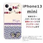 iPhone13 mini アイフォン13ミニ らふら 名入れ スマホケース 蝶 パープルフラワー