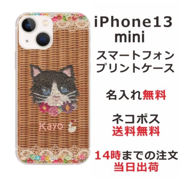 iPhone13 mini アイフォン13ミニ らふら 名入れ スマホケース 籐猫黒
