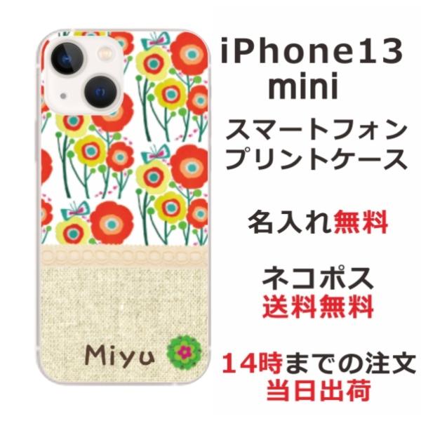 iPhone13 mini アイフォン13ミニ らふら 名入れ スマホケース 北欧デザイン フラワー オレンジ