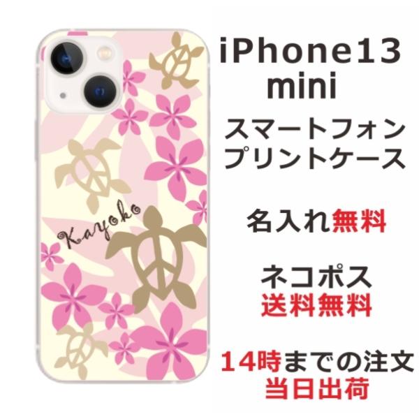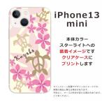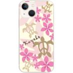 iPhone13 mini アイフォン13ミニ らふら 名入れ スマホケース ハワイアン ピンク ホヌ