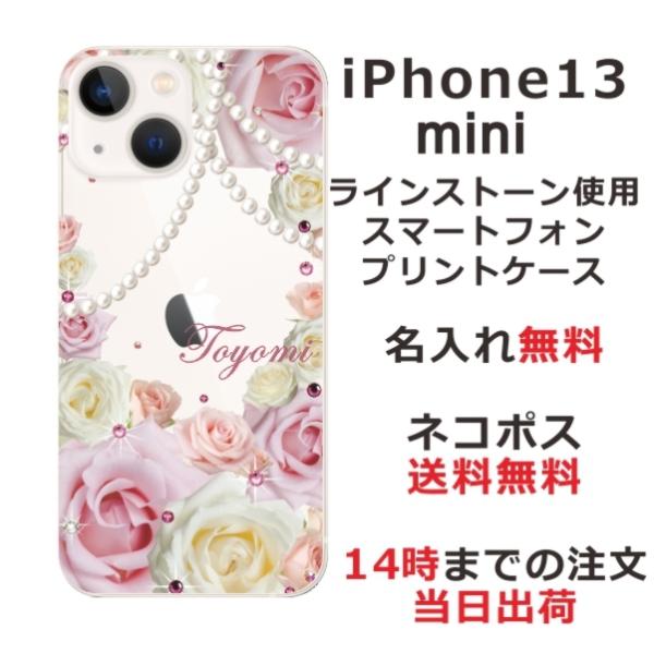 iPhone13 mini アイフォン13ミニ らふら 名入れ スマホケース ラインストーン スマホカバー 押し花風 ローズピンク