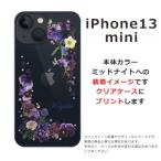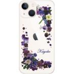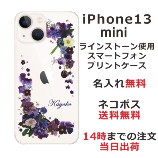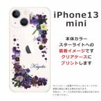 iPhone13 mini アイフォン13ミニ らふら 名入れ スマホケース ラインストーン スマホカバー 押し花風 パープルアレンジ