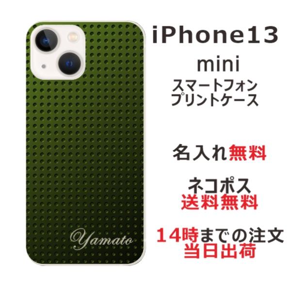 iPhone13 mini アイフォン13ミニ らふら 名入れ スマホケース メタル グリーン2