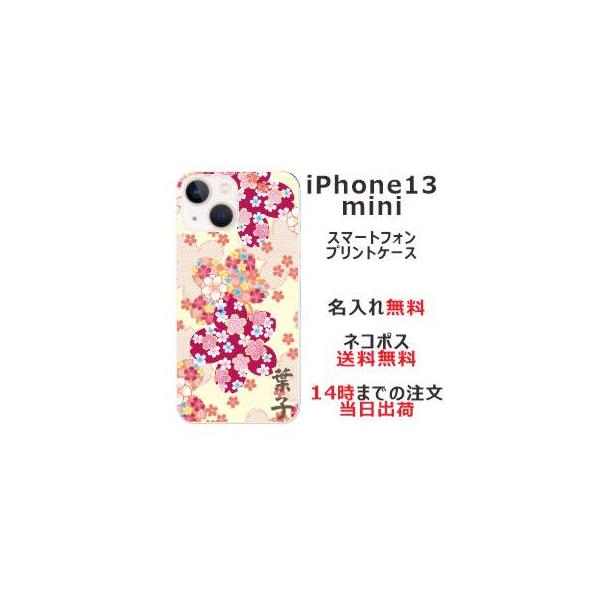 iPhone13 mini アイフォン13ミニ らふら 名入れ スマホケース 和柄 花 桜千代紙