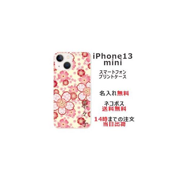 iPhone13 mini アイフォン13ミニ らふら 名入れ スマホケース 和柄 花 桜満開