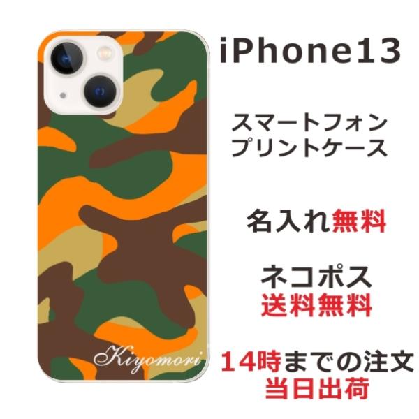 iPhone13 アイフォン13 らふら 名入れ スマホケース 迷彩 オレンジ