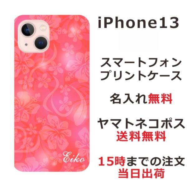 iPhone13 アイフォン13 らふら 名入れ スマホケース ハイビスカスピンク