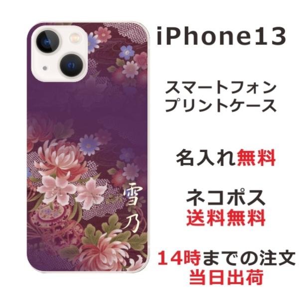 iPhone13 アイフォン13 らふら 名入れ スマホケース 和柄 和花紫桃グラデ
