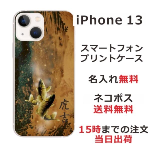 iPhone13 アイフォン13 らふら 名入れ スマホケース 和柄 黄金双鯉
