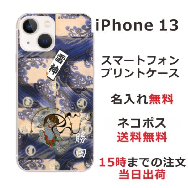 iPhone13 アイフォン13 らふら 名入れ スマホケース 和柄 雷神