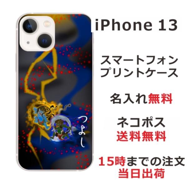 iPhone13 アイフォン13 らふら 名入れ スマホケース 和柄 風神雷神