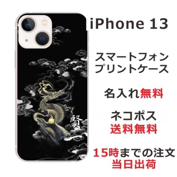 iPhone13 アイフォン13 らふら 名入れ スマホケース 和柄 漆黒雲海龍