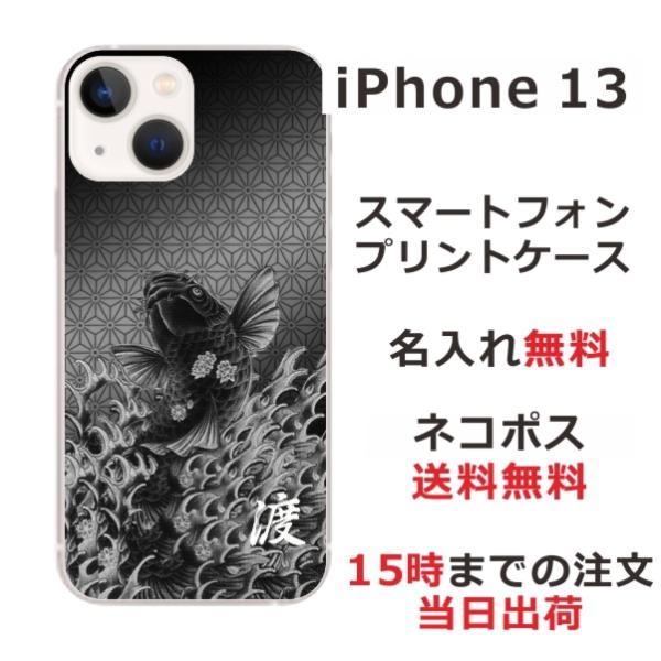 iPhone13 アイフォン13 らふら 名入れ スマホケース 和柄 昇り鯉黒