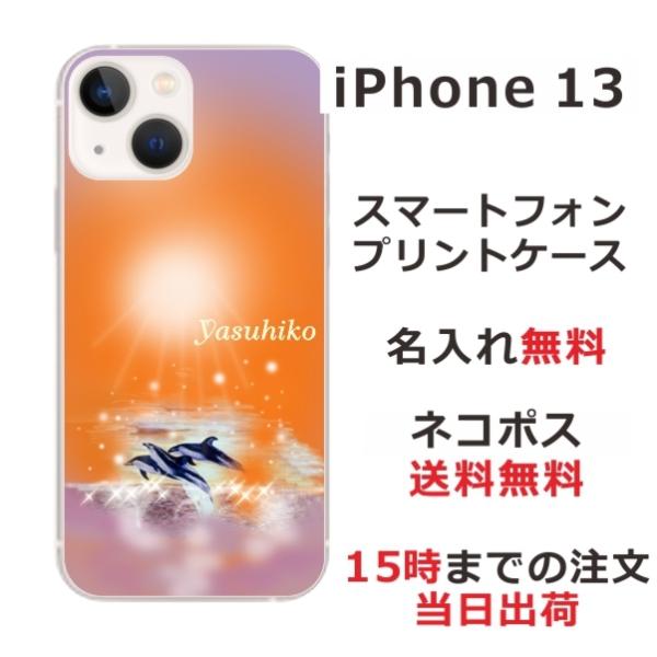 iPhone13 アイフォン13 らふら 名入れ スマホケース ドルフィン サンセット