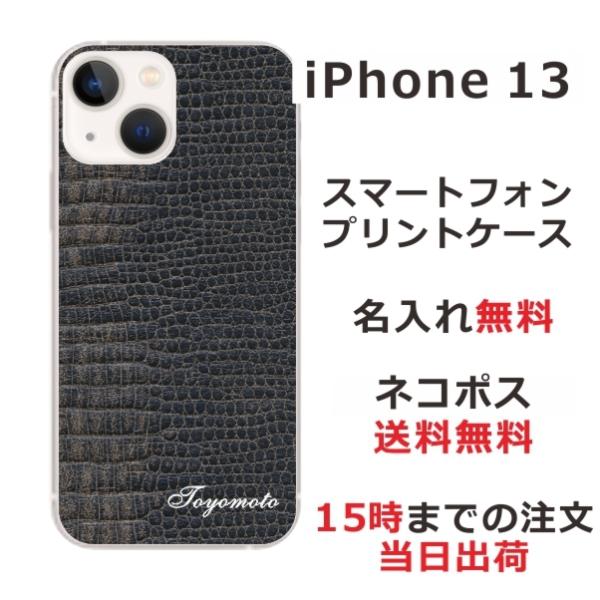 iPhone13 アイフォン13 らふら 名入れ スマホケース クロコダイル ブラック