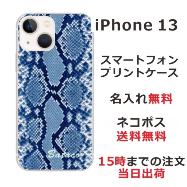 iPhone13 アイフォン13 らふら 名入れ スマホケース へび柄 ブルー