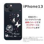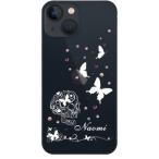 iPhone13 アイフォン13 らふら 名入れ スマホケース ラインストーン スカルバタフライ